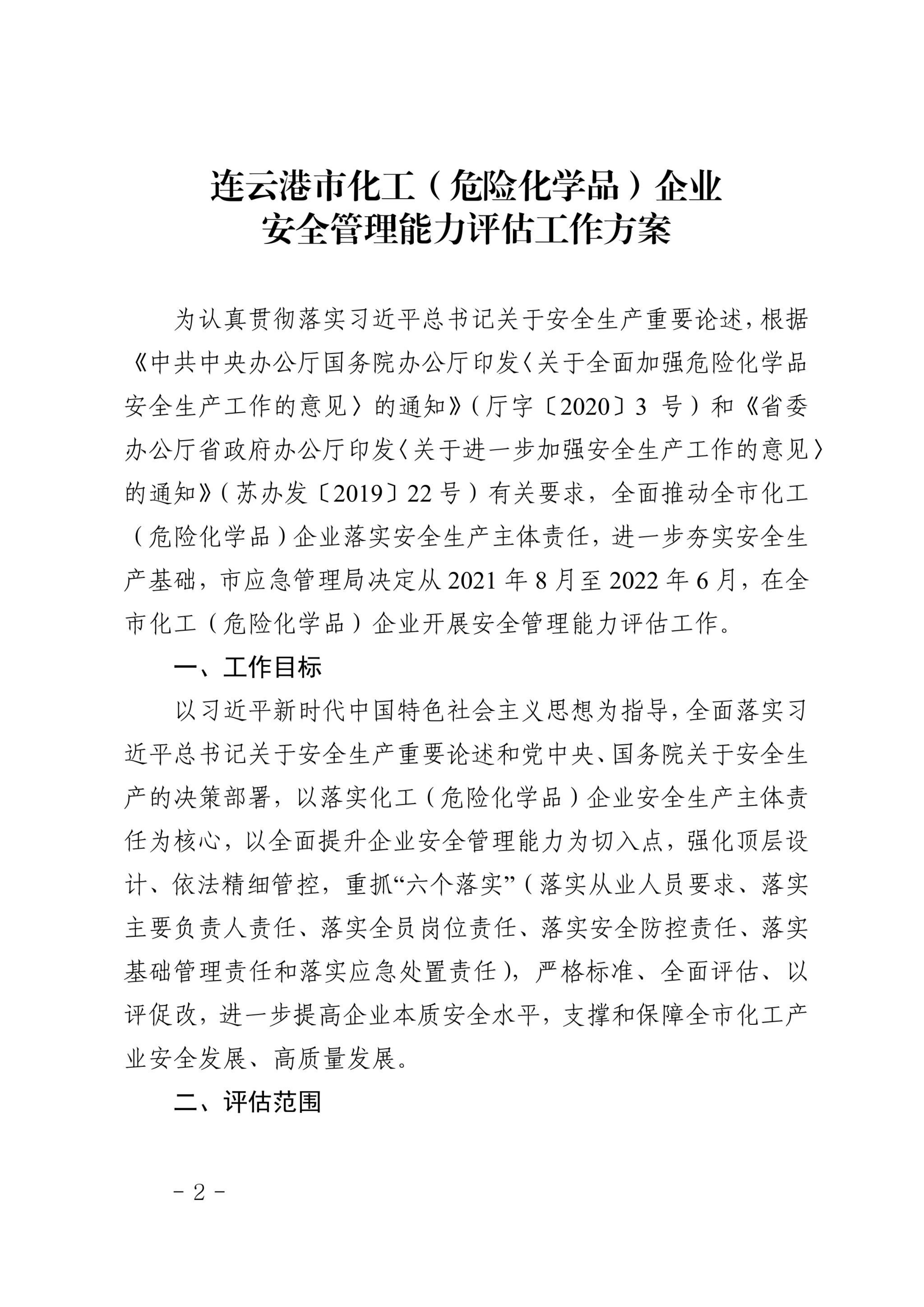 关于转发《关于印发〈连云港市化工(危险化学品)企业安全管理能力评估工作方案的通知》的通知